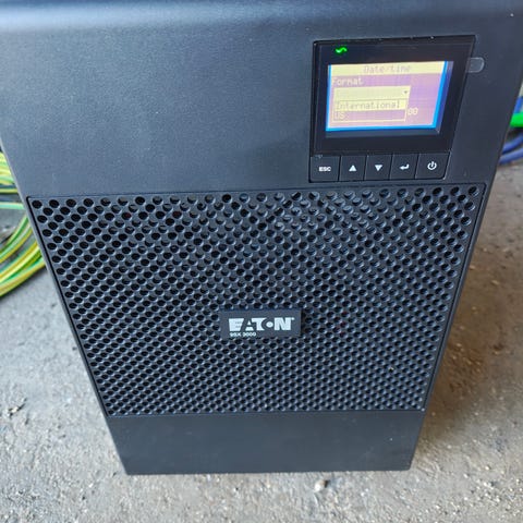 Räkki- tai pystyasennettava Eaton 9PX UPS, kiskot ja jalat mukana. Tilasin laitteen Saksasta 18.6.2025 ja akut on vaihdettu 1.7.2025 Akkua liikkeessä ja ne ovat tyypiltään Power Plus Agm 12V 7Ah F1. Hallintaliittymä on USB/RS232, ei verkkokorttia.