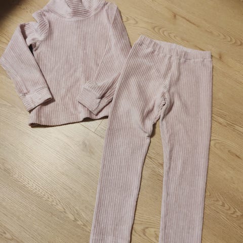 Laput on leikattu muuten pois, mutta siniset sortsit käyttämättömät, ja niiden lapussa kokomerkintä tallessa: 110/116. Ovat mielestäni pientä kokoa, menee varmasti jo ainakin koossa 104.