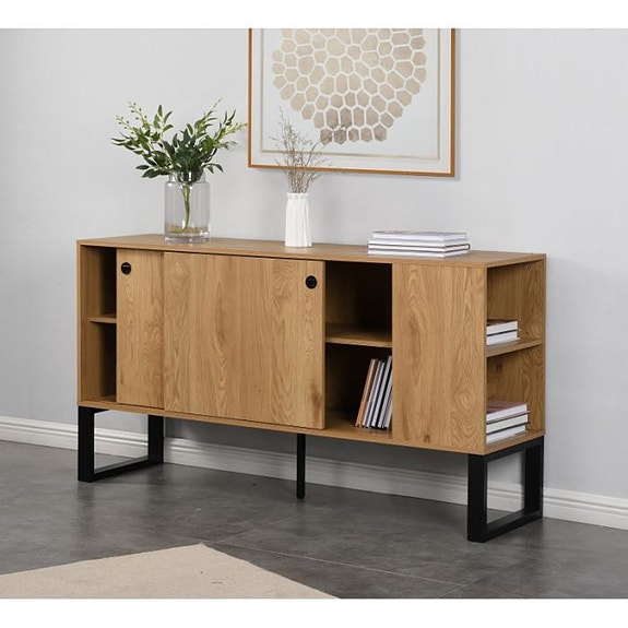Tyylikäs ja siro mustan värinen Latte-lipasto, josta löytyy kaksi vetolaatikkoa sekä kaappi. Kaapissa on väliseinän molemmin puolin yksi välihylly. Lipaston runko on 16 mm paksua laminoitua kalustelevyä, jossa on ABS-reunanauha. Mustat jalat ovat metallia ja niiden korkeus on 20 cm. Laatikoiden ja ovien etusarjat ovat 18 mm paksua mdf-levyä ja niissä on harjatut kullanväriset alumiinivetimet. Etusarjoissa olevat urat antavat lipastolle kauniin, yksilöllisen ilmeen. Lipaston leveys on 104 cm, syvyys 39 cm ja korkeus 83 cm.