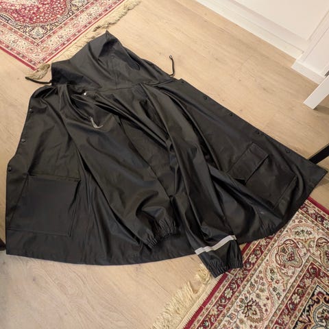 Tummansinivalkoinen ONLYn sadetakki, jossa 2 taskua ja huppu. Vain pari kertaa käytetty. Nappikiinnitys.