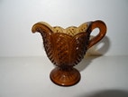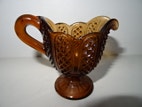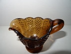 Noin 7,5 cm korkea Nuutajärven valmistama ruskea/oranssi lasinen kermakko. Kermakannu, kannu. Toridiili