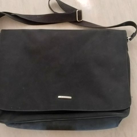Sisällä vetoketjullinen tasku. Takana tasku puhelimelle ja paikka kahdelle kynälle. Koko n.k20xl14xs6.