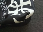 Näyttävä Guess laukku, musta valkoinen. Paljon käytetty ja pieniä käytön jälkiä löytyy, joista kuvat. Yleisilmeeltään mielestäni edelleen siisti. Sisällä ja sivulla taskuja. Vetoketjulla suljettava. Vuori ehjä ja siisti.