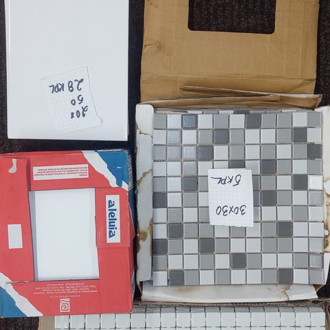 Uusia valkoisia laattoja, joissa on raitaurat.
