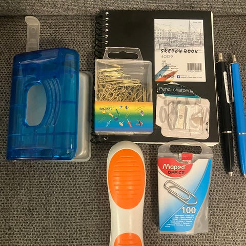 Kuvanmukainen. Paperit yms. Järjestykseen.