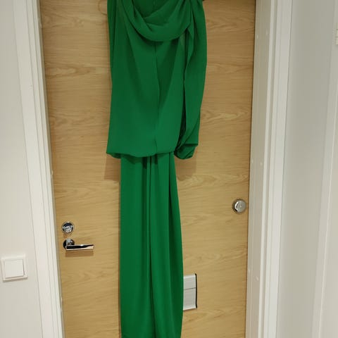 Vila juhlamekko vaaleanpunaisena, naisten koko 36. Yläselästä kuultaa läpi, muutoin alla alusmekko. Kaula-aukkoa säädelty itse muutamalla pistolla (kuvassa). Sivussa vetoketju. Polvipituinen.