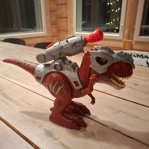 Myydään dinosaurus, jossa panos laukaisin kyljessä. Nouto Oulunsalosta tai postitus ostajan maksaessa kulut.