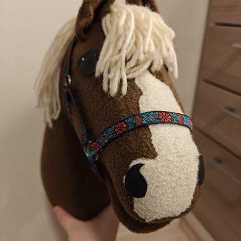 Musta itsetehty keppihevonen. Kunto hyvä, mutta muutamia käytön jälkiä. Vain nouto.
