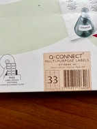 70x25mm, melkein 100 arkkia eli melkein 3300 tarraa(kuvasta näet paljonko laatikossa on)