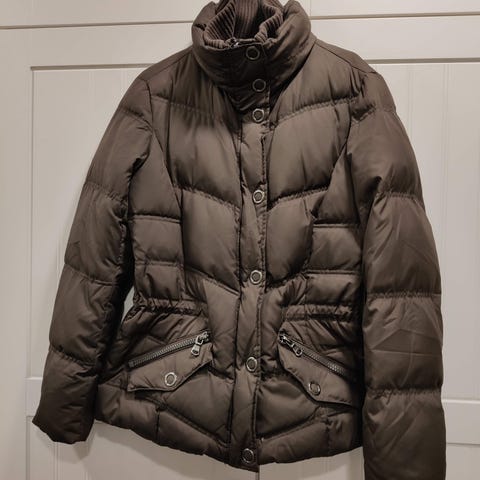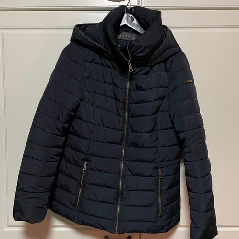 ESPRIT talvitakki naisten takki, koko M. Väri musta. Kevyt toppatakki, jossa vaakasuorat tikkauskuviot. Vetoketjullinen etutasku ja huppu. Kainalomitta 49cm.