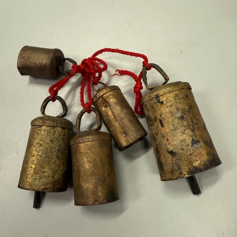 Takorauta kehä n.90cm. Kello heleä ja hyvä-ääninen n.11cm. Kokonaiskorkeus n.47cm. Kyselyt viestin kautta.