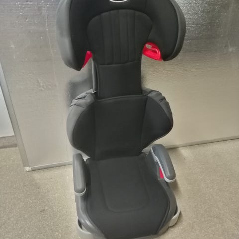 Graco Istuinkoroke, koko 36 cm. Lasten turvaistuin käytettäväksi auton takaistuimella, suunniteltu tarjoamaan korotusta ja tukea lapselle. Väri harmaa, materiaali kestävää kangasta ja muovia.