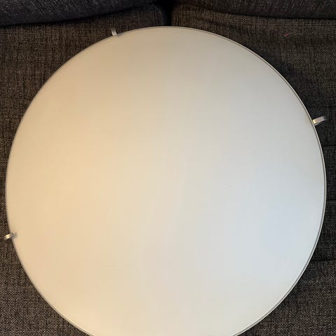 Myydään kattovalaisin, jossa valkoinen lasikupu ja sokeripalakiinnitys. Sisältää lampun. Vain nouto.