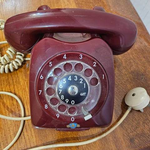 Myydään vanha lankapuhelin. Vähän pölyinen.