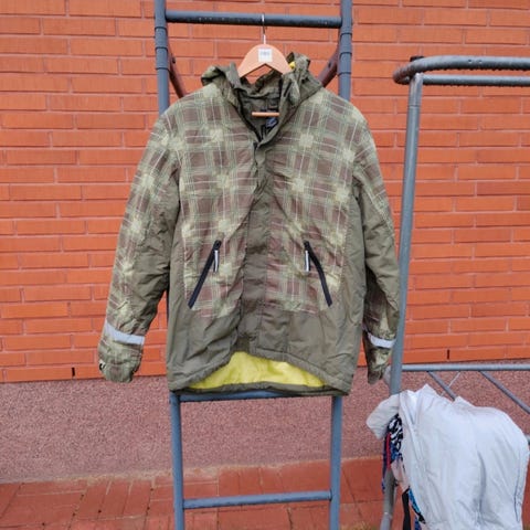 Siisti talvitakki, koko 170. Takissa on huppu ja helmassa on kiristysmahdollisuus. Helma on takaa pidempi kuin edestä. Edessä on kolme taskua, lisäksi yksi sisätasku. (Hihassa ei ole taskua). Merkki Everest. Hihoissa näkyy vähän käytön jälkiä.
