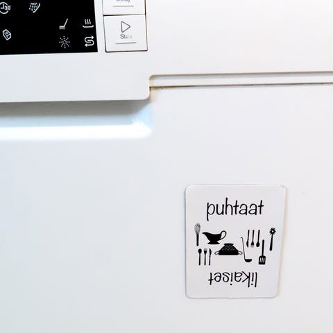 Hakusanat: magneetti, keittiö, tiskikone magneetti, astianpesukonemagneetti, tiskikonemagneetti, tiskikonelappu, puhtaat / likaiset, harmaa, teksti, sisustus, skandinaavinen, skandinaavinen sisustus, skandi, skandisisustus, moderni sisustus, kierräys, kierrätystä, kierrättäminen, kirppis, kirpputori, Helsinki, pääkaupunkiseutu, pääkaupunki, Uusimaa, myydään, myynnissä, osta