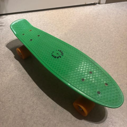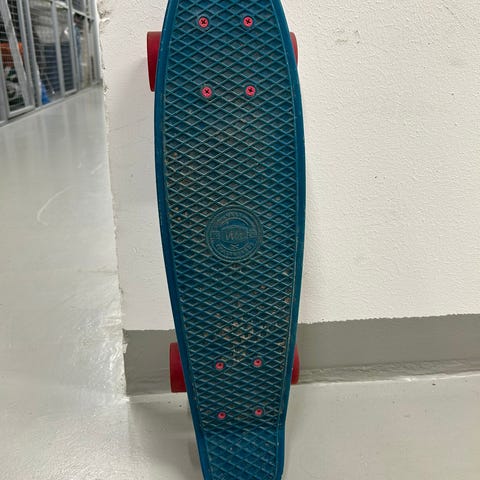 Penny Cruiser - Turkoosi muovinen rullalauta, jossa on keltainen ja violetti metallinen akselisto. Käytön jälkiä löytyy (katso kuvat), muuten oikein hyvässä kunnossa.