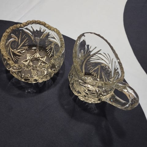 Karhulan lasin sokerikko, kermakko ja tarjoilulautanen