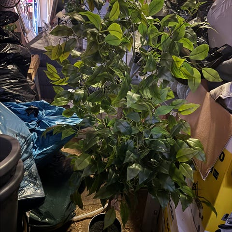 N.170cm korkea limoviikuna ulkona paviljongissa koristeena ollut muovinen tekokasvi (omassa muoviruukussaan)