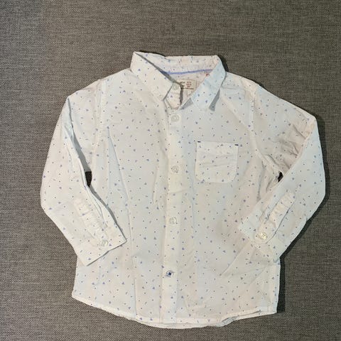 Zaran sininen lasten paita koossa 98. Toinen H&M valkoinen kauluspaita koossa 98. Molemmat ovat siistejä ja ehjiä.