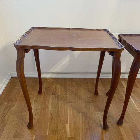 Erittäin siisti sarjapöytä. Tarina kertoo,että ex-omistajan isovanhemmat oli saanut pöydän häälahjaksi vuonna 1940. Pöytää on pidetty hyvin,kun vikoja ei ole ja noi kuvassa olevat pöytäliinat on olleet mukana alusta asti.