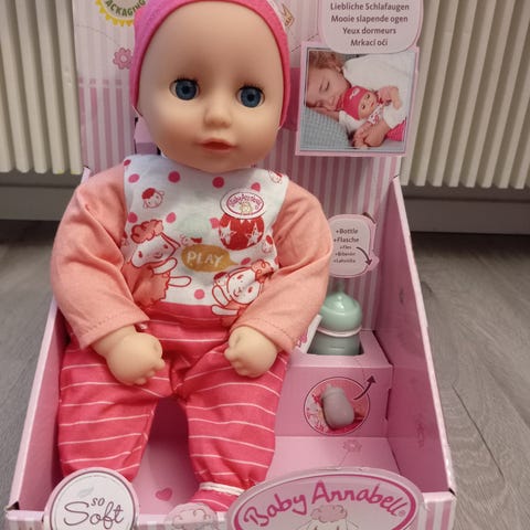 Pehmeävartaloinen interaktiivinen vauvanukke äänirasialla. Vauva juttelee ja nauraa, sitten se alkaa yskiä ja itkeä, kuume nousee ja posket muuttuvat punaiseksi. Äänirasia toimii neljällä AA-paristolla (ei mukana) Nukke on harvinainen ja hyväkuntoinen, hän on hieman painotettu eli tuntuu kuin oikealta vauvalta.