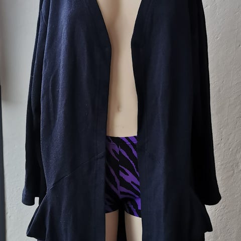 Niinmun Design pitkä tummanharmaa neuletakki, koko M. Ohuempaa merinovillaneulosta, monikäyttöinen läpi vuoden. Edessä taskut. Mukana vyö, joten voi käyttää avonaisena ilman vyötä tai kiinni vyön kanssa. Uudenveroinen kunto. Kai-kai 48 cm, niska-helma 118 cm. Laadukas ja ajaton vaate.