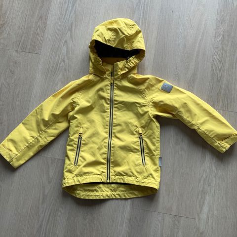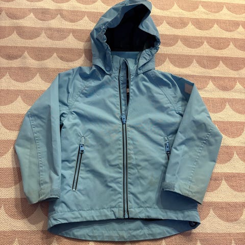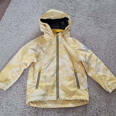 Hyväkuntoinen, yhden lapsen käytössä ollut vihreä Reimatec Soutu välikausitakki koko 110. Vedenpitävä (vesipilari > 10 000 mm), irroitettava huppu, helmassa kiristysmahdollisuus, hihansuissa tarrakiristys. Yleisilmeeltään siisti, mutta tarkemmin syynätessä löytyy pientä käytönjälkeä: hihansuissa hieman tummentumaa ja hivenen pehmentymää, hihoissa muutama pieni yksittäinen haalea "tahra" (nämä huomaa jos läheltä tarkkaan katsoo). Helmassa lähinnä sisäpuolella kiristyskuminauhan kohdalla pientä jälkeä. Itse kelpuuttaisin vielä hyvinkin ykköstakiksi! Osassa kuvissa takin väri näyttää haalealta, on luonnossa vihreämpi.