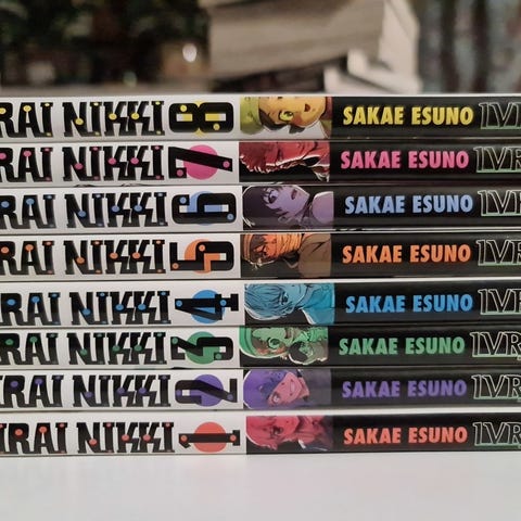 Myydään Esuno Sakaen Mirai Nikki- mangan kuudes osa suomeksi. Hyväkuntoinen, mitä nyt vanhoja hintalapun jäämiä takakannessa.