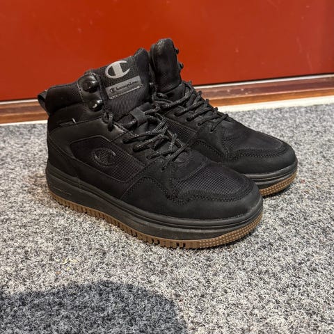 Champion lasten tennarit pojille, koko 38. Kengät ovat käytetyssä kunnossa. Ehjät . Kengissä on nauhat ja tarrakiinnitys nilkan ympärillä tukevuutta varten. Sopivat arkikäyttöön ja aktiiviseen ulkoiluun.
