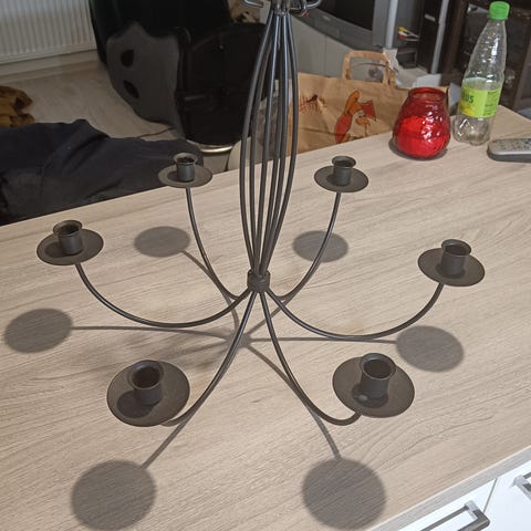 7 kynttiläpaikkaa, korkeus kokonaisuudessaan n.100cm, leveys 130cm