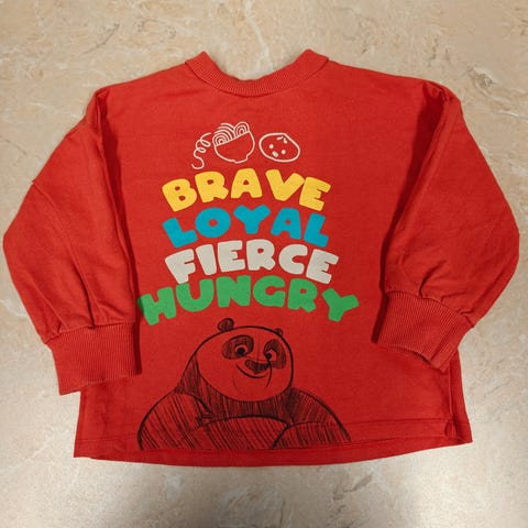 Siisti ja tuoksuton Tumble ’n dry merkin peurapaita koko 92. Kauniita kultaisia yksityiskohtia. Super pehmeä materiaali. Hihasta paikattu pieni reikä.