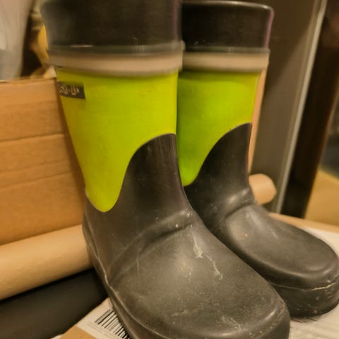 Nokian lasten kumisaappaat koko 26. Siistit, ulkopinnassa värjäymää jota en ole yrittänyt poistaa.