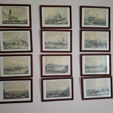 Myydään 2 kpl Turku taulua 1800-luvun maisemalla. Molemmat maalaukset ovat Hämeenkadulta ja toisessa näkyy Aurajoki ja toisessa raatihuone. Kehyksissä on kulumaa.