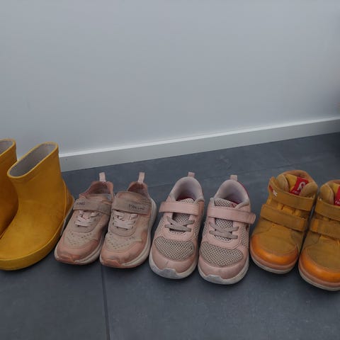 Nokian kumpparit, Niken tarralenkkarit, Superfit lenkkarit ja crocsit kokoa 25.