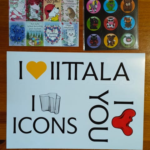 Tarravihko avattu pakkauksesta, ei käytetty, sekä 183 kpl erilaisia ja eri kokoisia käyttämättömiä tarroja, sekä pari tarra arkkia. Rasia ei tule mukaan. Hinta sisältää postikulut.