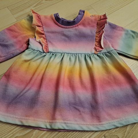 Vauvan mekko koko 56. Mekossa on pitkät hihat ja painonappikiinnitys olkapäällä. Ehjä ja siisti.