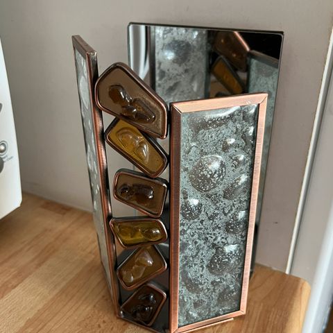 Hyvässä kunnossa oleva, koristeena seisonut nurkassa. Olen pitänyt tässä kirkasta lasiastiaa jossa valot tai kukka. Nyt kuitenkaan ei enään löydä paikkaa, joten myyn pois. Lasiastia ei kuulu kauppaan. Korkeus 66cm ja halkaisija 22cm plus että jalat tulevat hieman leveämmälle.