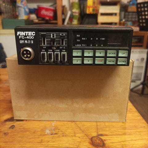 MAC Mini-6 CB-radio sisältäen mikrofonin ja ohjauspaneelin. Laite on sinivärinen ja siinä on äänenvoimakkuuden säätö sekä kanavavalitsin. Soveltuu radioviestintään. myös anteeni löytyy