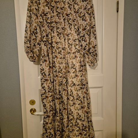 Soyaconcept sini-ruskea-beigekirjava puuvilla-viskoosimekko, koko XL. Ohut ja mukava päällä. Arkimekko, mutta kommenttien perusteella näyttää juhlavammaltakin. Ei taskuja.