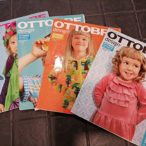 Ottobre Design lastenvaatteiden kaavalehdet vuosikerta 2014 eli numerot 1/2014, 3/2014,4/2014 ja 6/2014.