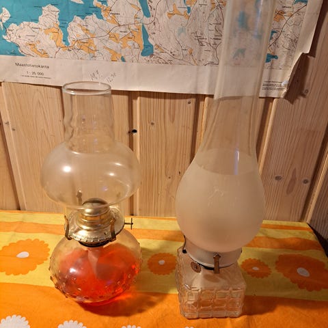 Myydään Arabia/Nuutajärvi musta lasinen öljylamppu 70-luvulta.