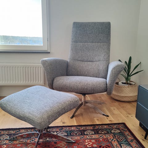 Havberg nojatuoli ja rahi. Tammikuussa ostettu, Ikean mukaan 10vuoden takuu.