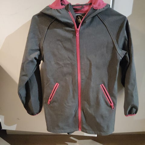 Hupullinen Northbrook Aquamax ulkoilutakki, koko 152 cm. Huppu neppareilla kiinni. Hupussa sivuilla kuminauhaa joka muotoilee huppua niin, että pysyy paremmin päässä. Edessä alhaalla kaksi vetoketjullista taskua. Verkko vuori. Hihansuissa säätötarrat, mutta toisesta hihasta irronnut pois säätölipare millä säätö tarraan tapahtuu. Helmassa säätökuminauha. Tuulilistassa myös tarrakiinnitykset. Vasemmassa hihassa kaksi tummaa tahraa jotka eivät ole hienossapesussa lähteneet. Tahroista toinen on etupuolella ylhäällä ja toinen saman hihan takapuolella lähempänä hihansuuta. Lähikuvat tahroista.