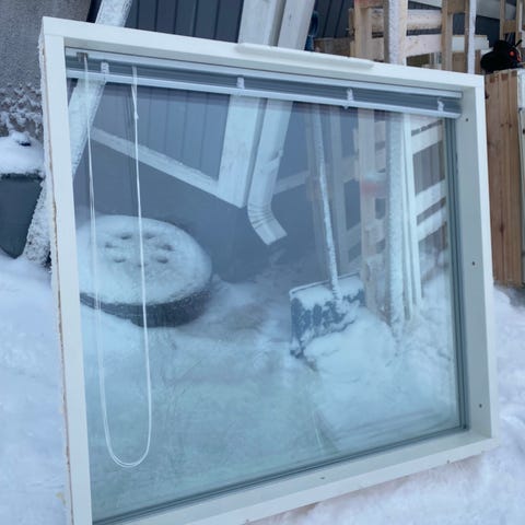 Kuvissa oleva ikkuna tarpeettomana. Leveys 90 korkeus 40 ja karmin syvyys on 13 cm. Hyvä käytetty kunto.