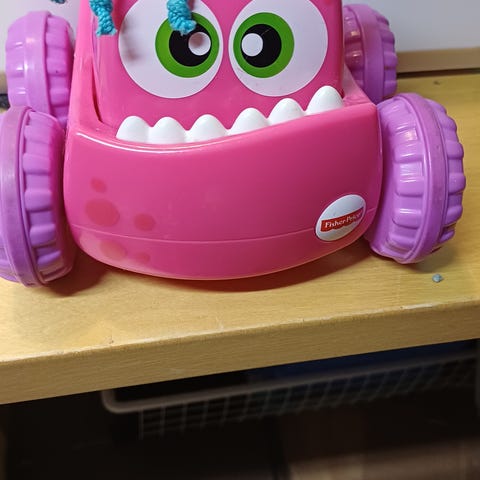 Fisher Price auto, vene&kirja kiinnityslenkeillä
