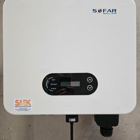 Myydään ylimääräiseksi jäänyt invetteri jouduin vaihtamaan isonpaan paneelien lisäyksen vuoksi toimii moitteettomasti. Ollut käytössä noin 3 vuotta takuuta jäljellä 7 vuotta. Mukaan tulee uusi stick logger. Tietoja laitteen ominaisuuksista saa sofar solarin sivuilta.