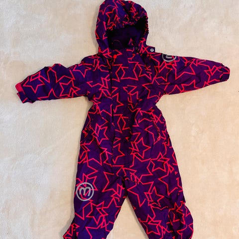 Minymo lasten haalari, koko 92, väriltään kirjava. Haalarissa on kirkkaat tähtikuviot ja vaaleanpunainen fleecevuori. Sisältää säädettävät jalkalenkit ja hupun. Soveltuu tytöille.