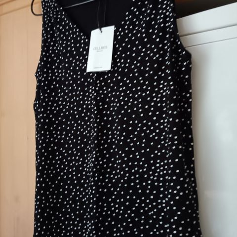Cellbes hihaton toppi mustassa värissä, koko 38. Valmistettu mukavasta materiaalista, sopii naisille. Topissa on yksinkertainen muotoilu ja koristeellinen yksityiskohta kauluksessa. Kai-kai mitta 46cm