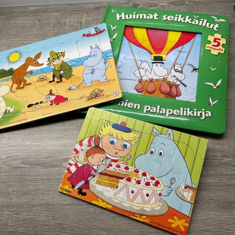 Myydään erilaisia palapelikirjoja: Muumi (MYYTY), Miina ja Manu (MYYTY) sekä Richard Scarry Hessu Kissala. Hinta 4 eur per kirja. Jokaisessa 5 erilaista palapeliä. Kaikki palat tallella paitsi Muumista puuttuu yksi pala. Ostettu uutena. Ollut käytössä yhdellä lapsella. Ei lemmikkejä eikä tupakoida. Postitus 6,90 EUR tai nouto Riihimäen Citymarket tai Prisma. Katso myös muut myymäni tuotteet.